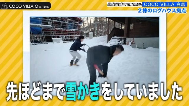 ▼ COCO VILLA 白馬で雪かきをする安藤