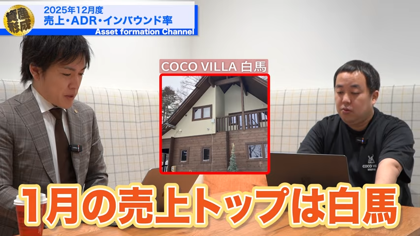 12月の時点で、入っている予約からして1月の売上ランキングは白馬の01棟、02棟という順番でそれぞれ200万円ぐらいになる予定です。